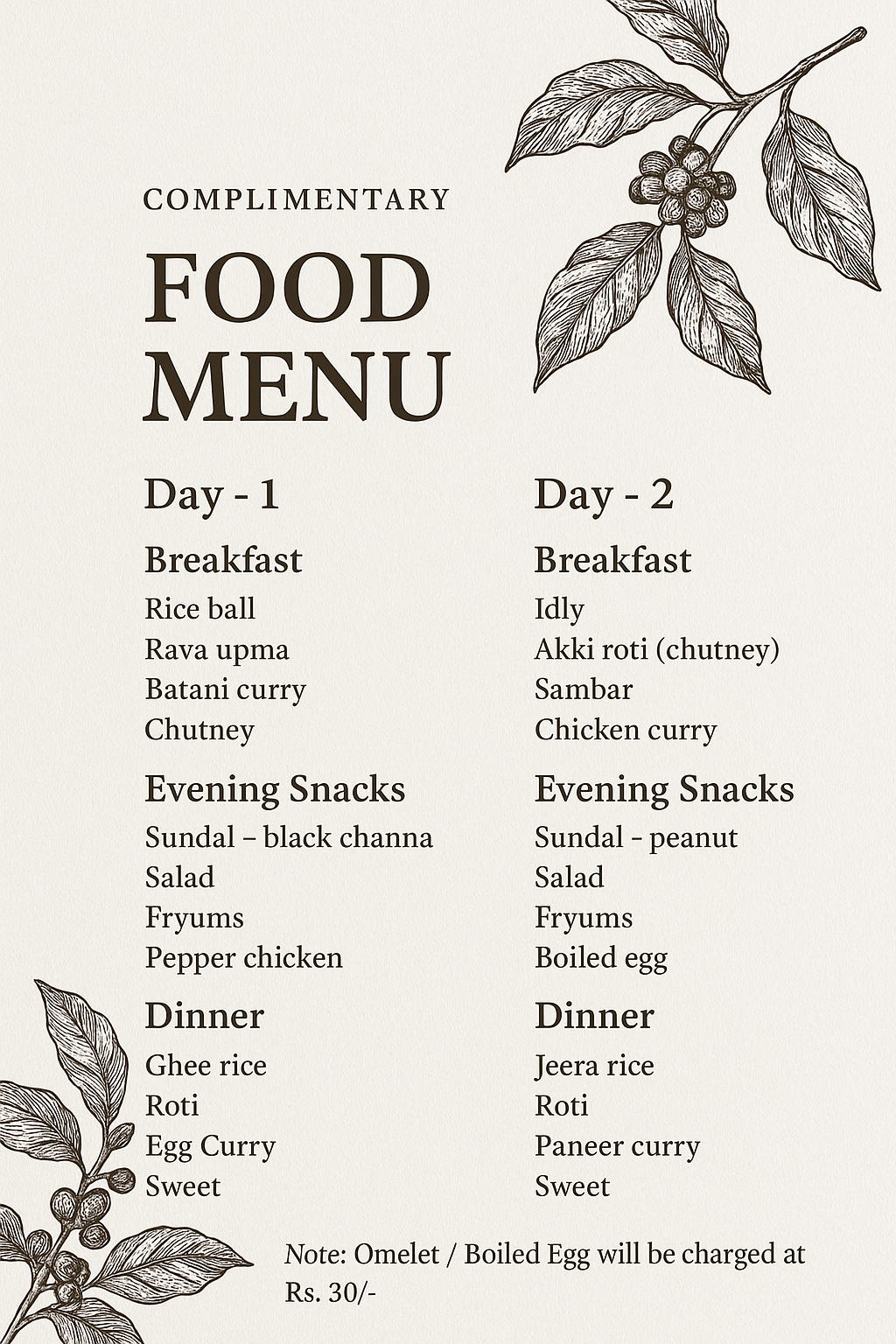 • Complimentary Breakfast Menu (CP Plan)